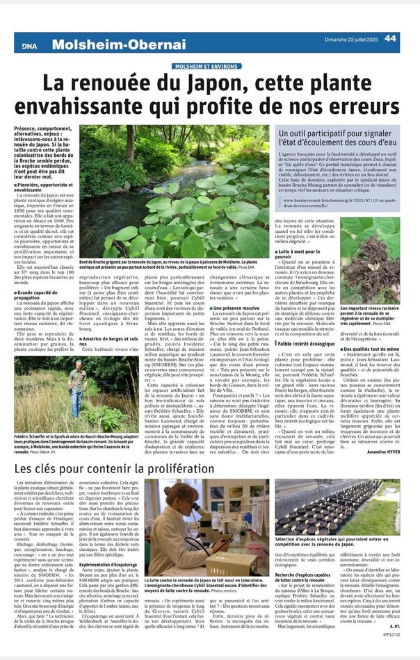 La renouée du Japon, au coeur des enjeux HYDRO 20 septembre 2023 Article de presse paru dans les Dernières Nouvelles d'Alsace en septembre 2023 Fichier(s) lié(s) Nom du fichier : IMG-20230723-WA0003.jpg Extension du fichier : jpg Poids du fichier : 377 Ko