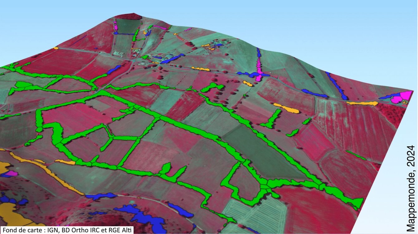La mise à disposition des données IGN, qu’elles soient récentes (LiDAR HD, MNS photogrammétriques) ou anciennes (orthophotographies historiques) ouvrent de nombreuses perspectives pour cartographier les arbres hors forêt et les haies champêtres, évaluer leur multifonctionnalité et suivre leur évolution. Dans cet exposé, nous donnerons à voir « la science en train de se faire » avec des premiers résultats de reconnaissance automatique de la couverture arborée dans les images anciennes par apprentissage profond ainsi qu’une illustration d’indicateurs LiDAR pour rendre compte de la structure des haies et leur diversité. Ces travaux s’inscrivent dans le développement d’une boîte à outil spécifique à la caractérisation du bocage - HedgeTools – qui a vocation à centraliser des méthodes pour faciliter l’évaluation de la qualité écologique des haies et les services écosystémiques qu’elles fournissent.