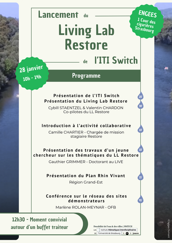 Venez nous rejoindre à la réunion de lancement de Restore, qui se tiendra ce mercredi 28 janvier de 10h15 à 14h à l'ENGEES (Amphi Eau).