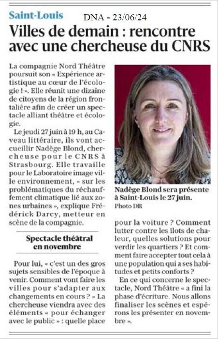 Nadège Blond apparait dans la presse locale pour ses activités en lien avec...le théâtre!